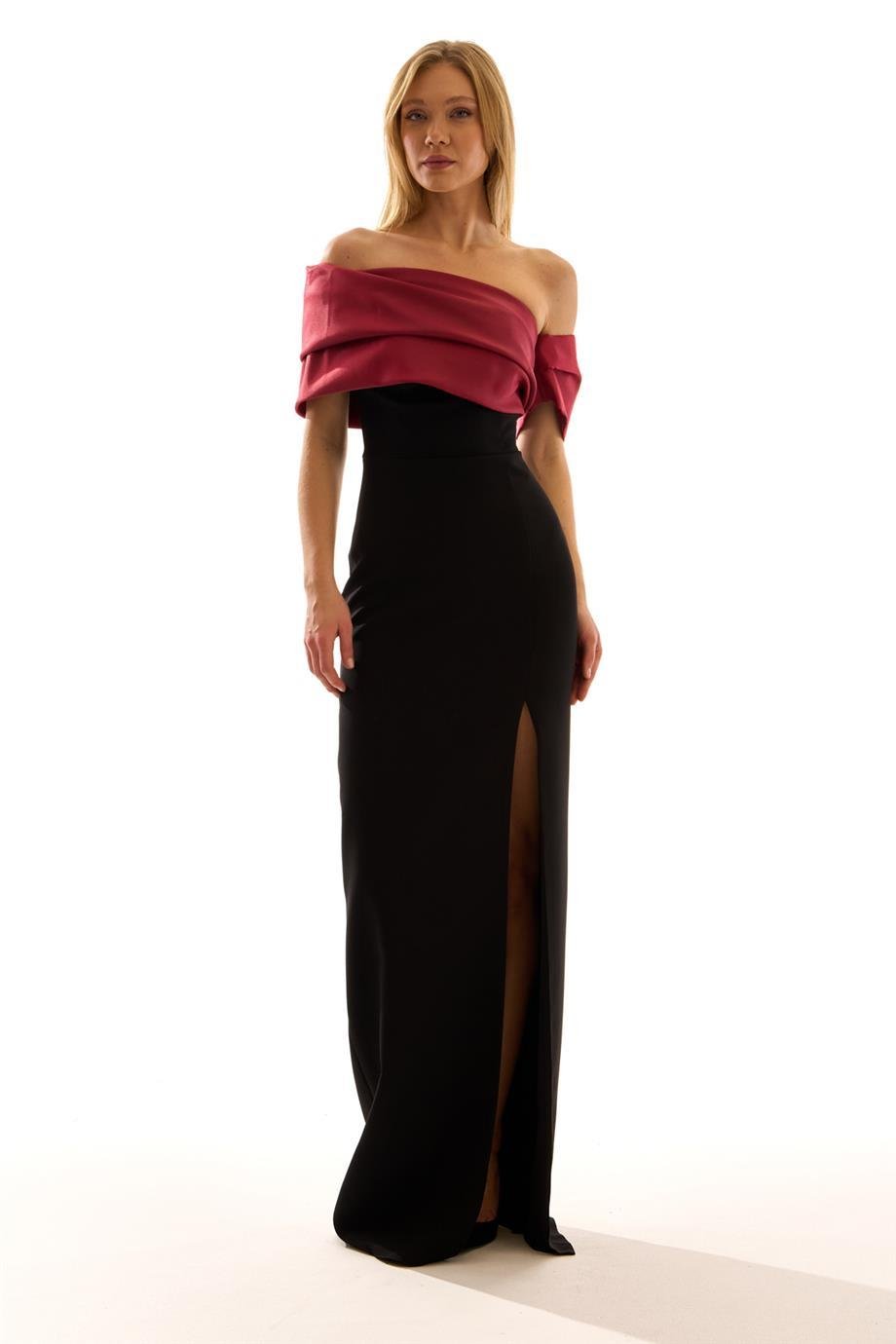 Tek Omuz Düşük Kol Straplez Yaka Krep Kumaş Abiye Elbise