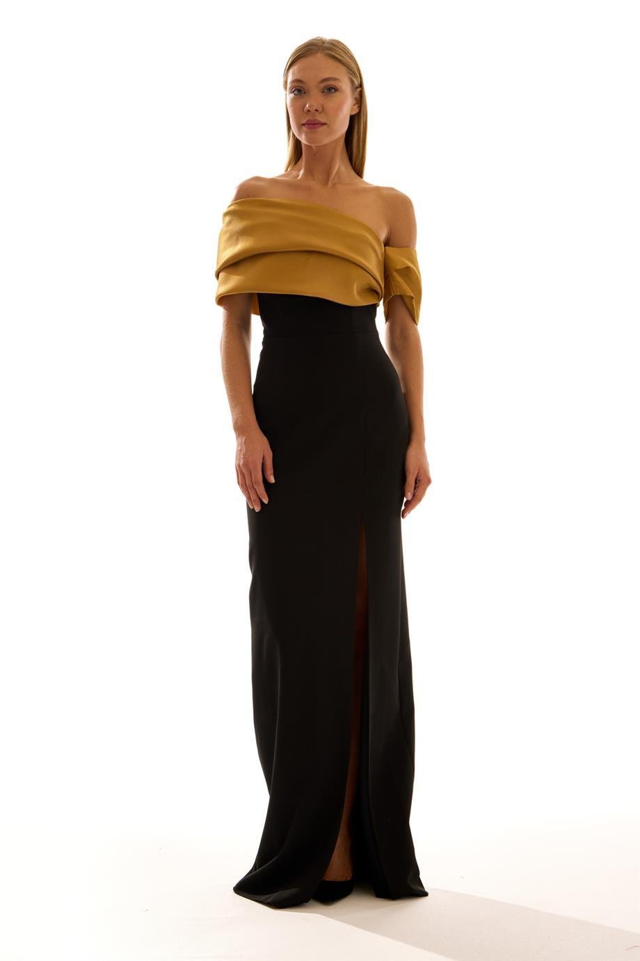 Tek Omuz Düşük Kol Straplez Yaka Krep Kumaş Abiye Elbise