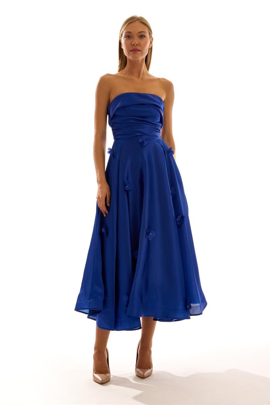 2025 Straplez Çicek Detaylı Minel Kısa Kadın Abiye Elbise