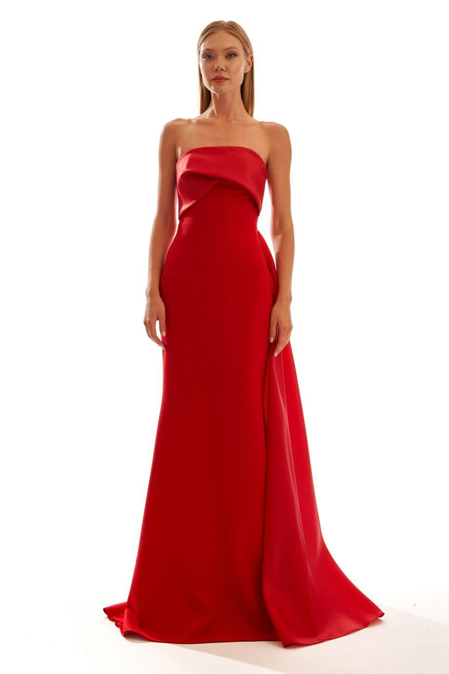 Straplez Drapeli Pelerin Detaylı Krep Kadın Uzun Abiye Elbise