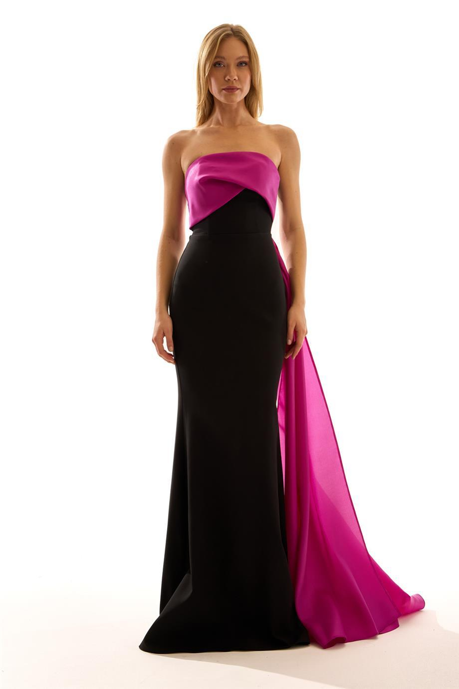 Straplez Drapeli Pelerin Detaylı Krep Kadın Uzun Abiye Elbise