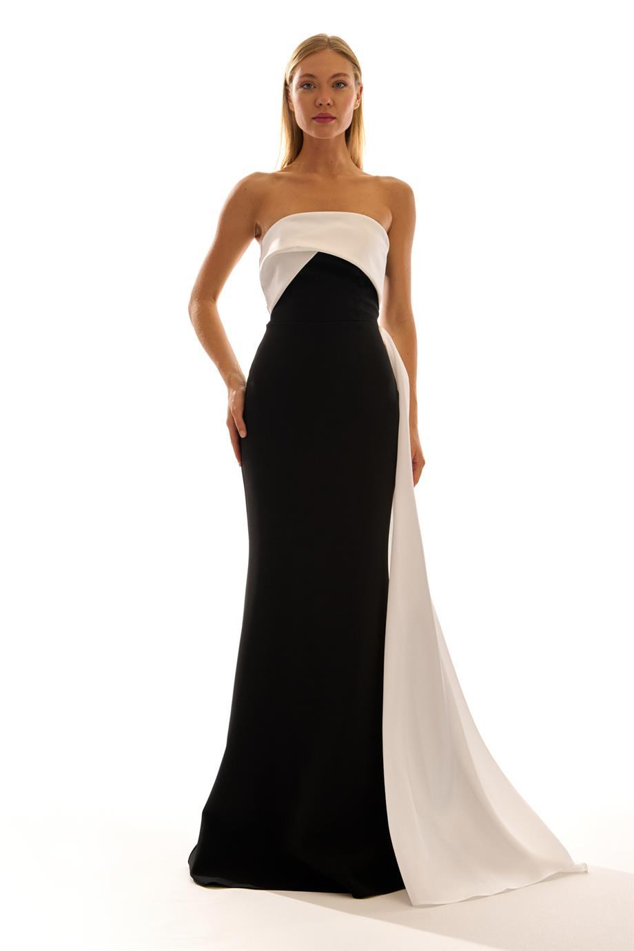 Straplez Drapeli Pelerin Detaylı Krep Kadın Uzun Abiye Elbise