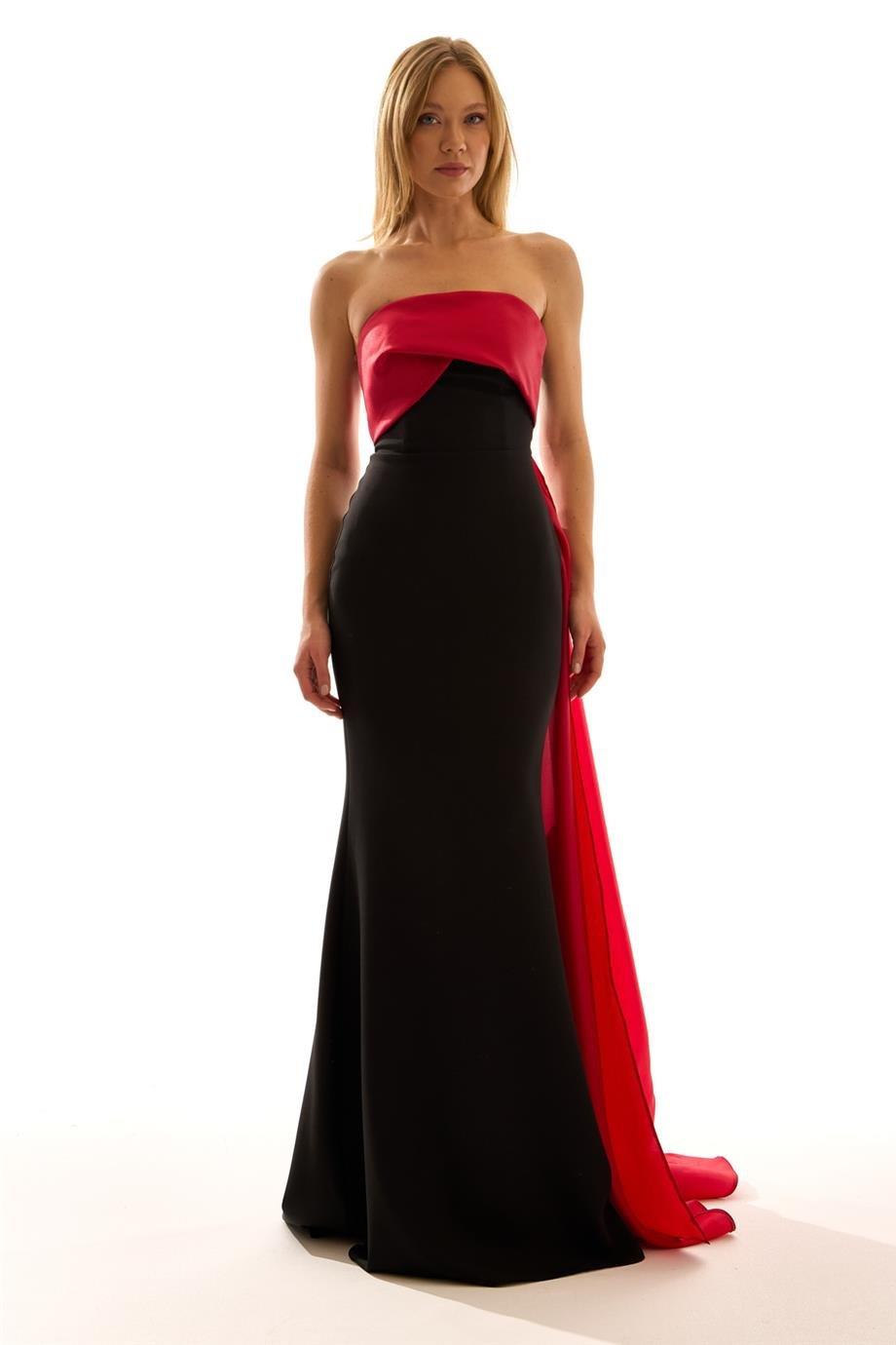 Straplez Drapeli Pelerin Detaylı Krep Kadın Uzun Abiye Elbise