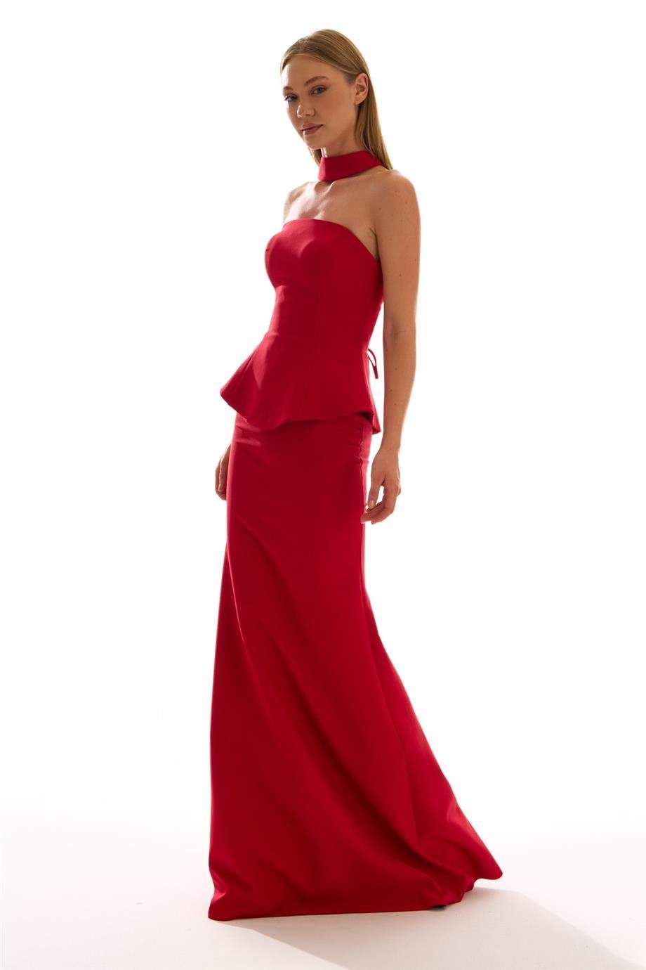 Askısız Peplum Detaylı Kadın Uzun Abiye Elbise