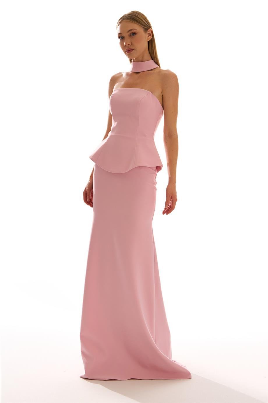 Askısız Peplum Detaylı Kadın Uzun Abiye Elbise