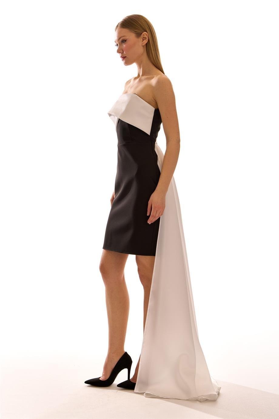 Straplez Asimetrik Kuyruk Detaylı Kadın Mini Abiye Elbise